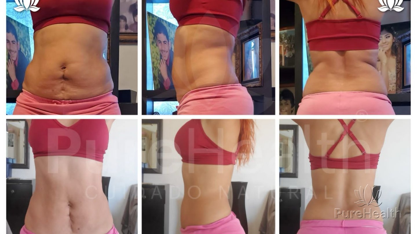 esta clienta consumió los productos pure health, reduciendo grasa abdominal y mejorando la digestión